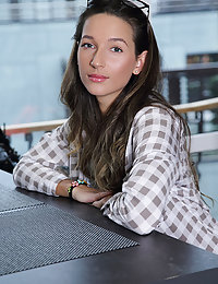 Kenya displays her erect nipples and sweet pussy on the chair.