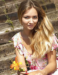 Victoria Puppy strips her flowery dress as she bares her tight body under the sun.